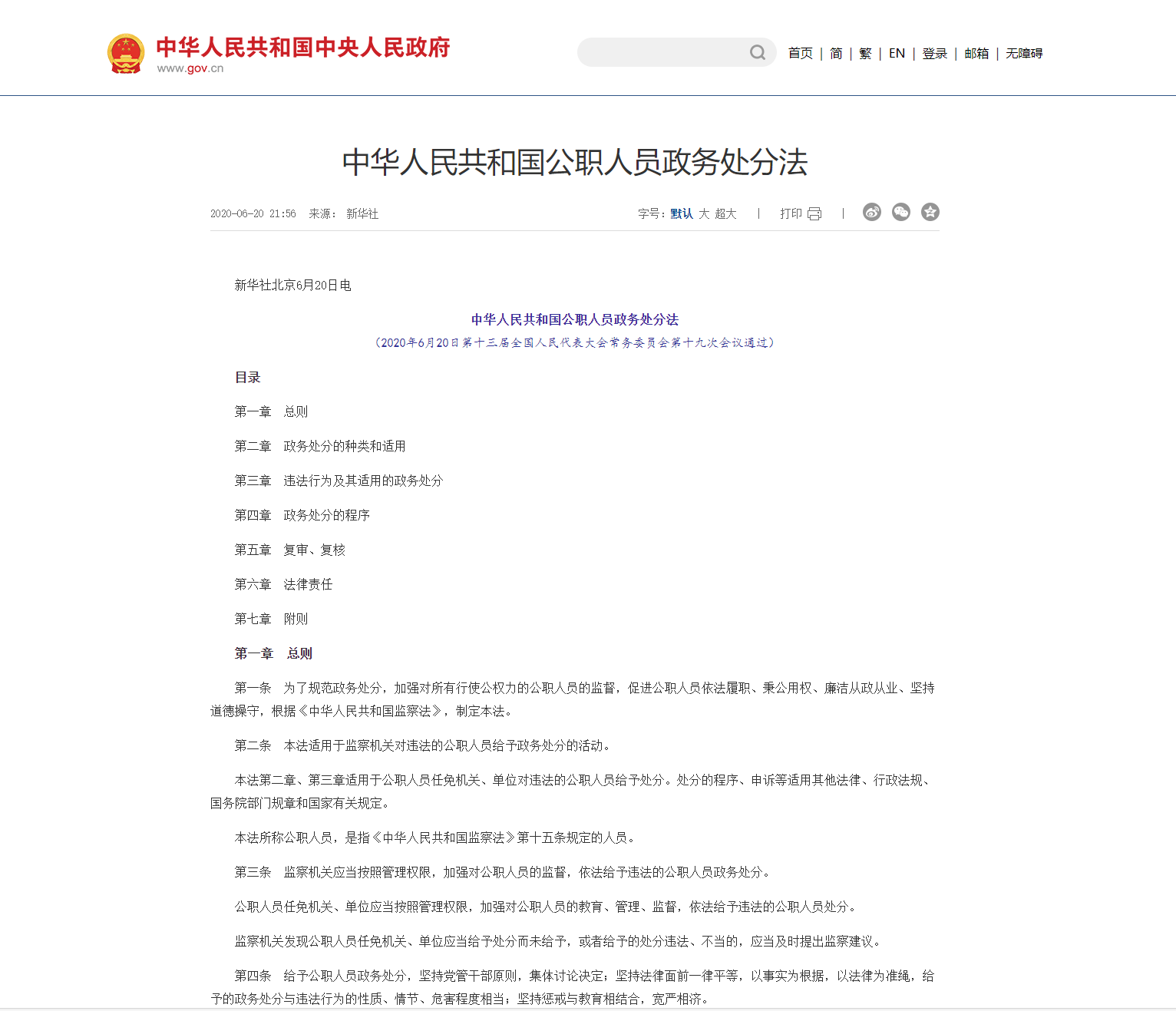 中華人民共和國(guó)監(jiān)察法 第一章總則第一條為了深化國(guó)家監(jiān)察體制改革,加強(qiáng)對(duì)所有行使公權(quán)力的公職人員的監(jiān)督,實(shí)現(xiàn)國(guó)家監(jiān)察全面覆蓋,深入開(kāi)展反腐敗工作,推進(jìn)國(guó)家治理體系和治理能力現(xiàn)代化,根據(jù)憲法,制定本法。第二條堅(jiān)持中國(guó)共產(chǎn)黨對(duì)國(guó)家監(jiān)察工作的領(lǐng)導(dǎo),以馬克思列寧主義、毛澤東思想、鄧小平理論、“三個(gè)代表”重要思想、科學(xué)發(fā)展觀、習(xí)近平新時(shí)代中國(guó)特色社會(huì)主義思想為指導(dǎo),構(gòu)建集中統(tǒng)...