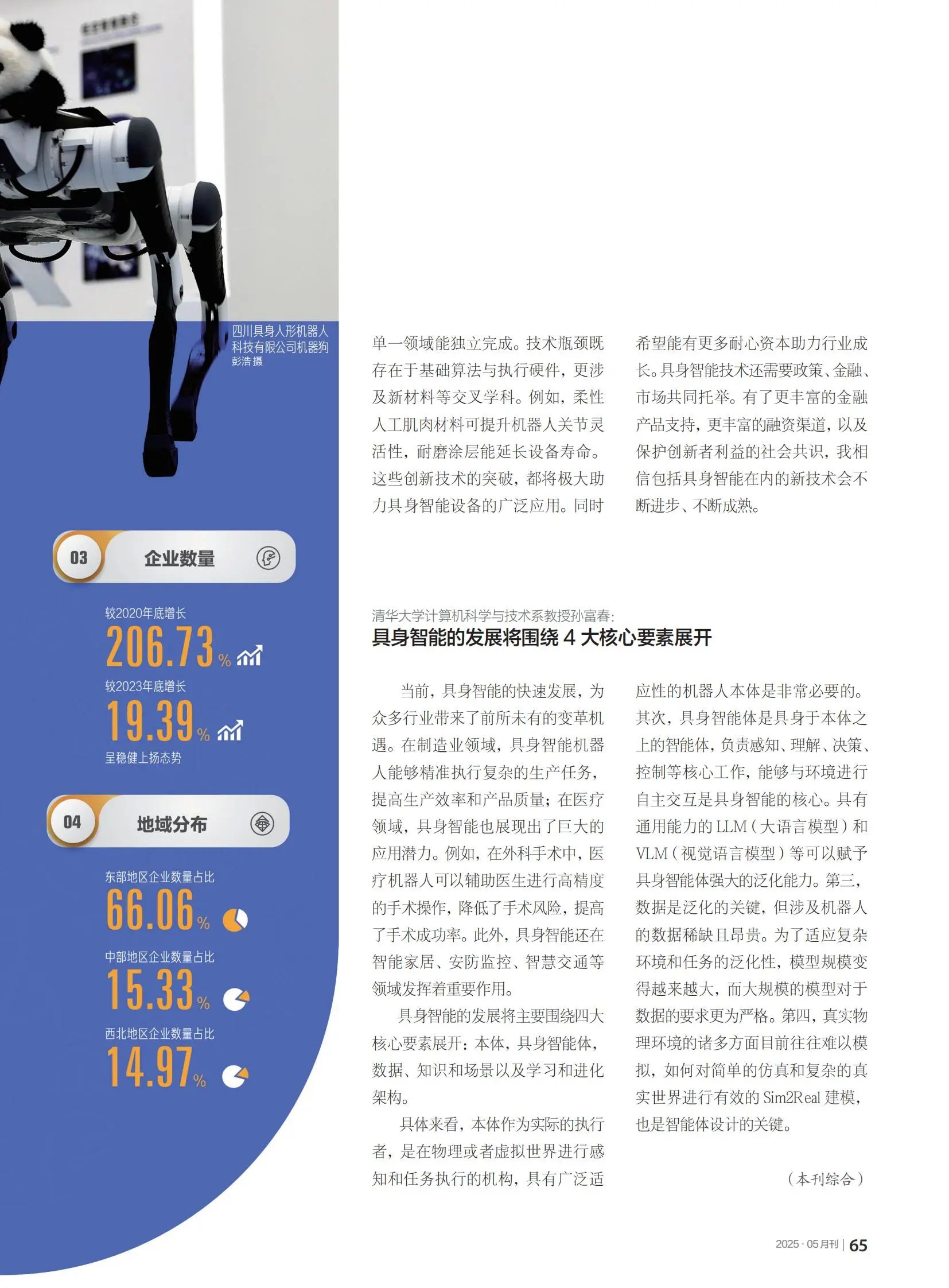 發(fā)展具身智能是系統(tǒng)工程,絕非單一領(lǐng)域能獨(dú)立完成。技術(shù)瓶頸既存在于基礎(chǔ)算法與執(zhí)行硬件,更涉及新材料等交叉學(xué)科。例如,柔性人工肌肉材料可提升機(jī)器人關(guān)節(jié)靈活性,耐磨涂層能延長(zhǎng)設(shè)備壽命。這些創(chuàng)新技術(shù)的突破,都將極大助力具身智能設(shè)備的廣泛應(yīng)用。同時(shí)希望能有更多耐心資本助力行業(yè)成長(zhǎng)。具身智能技術(shù)還需要政策、金融、市場(chǎng)共同托舉。有了更豐富的金融產(chǎn)品支持,更豐富的融資渠道,以及保護(hù)創(chuàng)新者利益的社會(huì)共識(shí),我相信包括具身智能在內(nèi)的新技術(shù)會(huì)不斷進(jìn)步、不斷成熟。