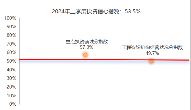 2024年三季度投資信心指數(shù)為53.5%,較二季度上升1%,投資信心向好。投資信心指數(shù)由重點投資領(lǐng)域分指數(shù)和工程咨詢機構(gòu)經(jīng)營狀況分指數(shù)構(gòu)成,其中重點投資領(lǐng)域分指數(shù)對投資信心指數(shù)支撐作用明顯。