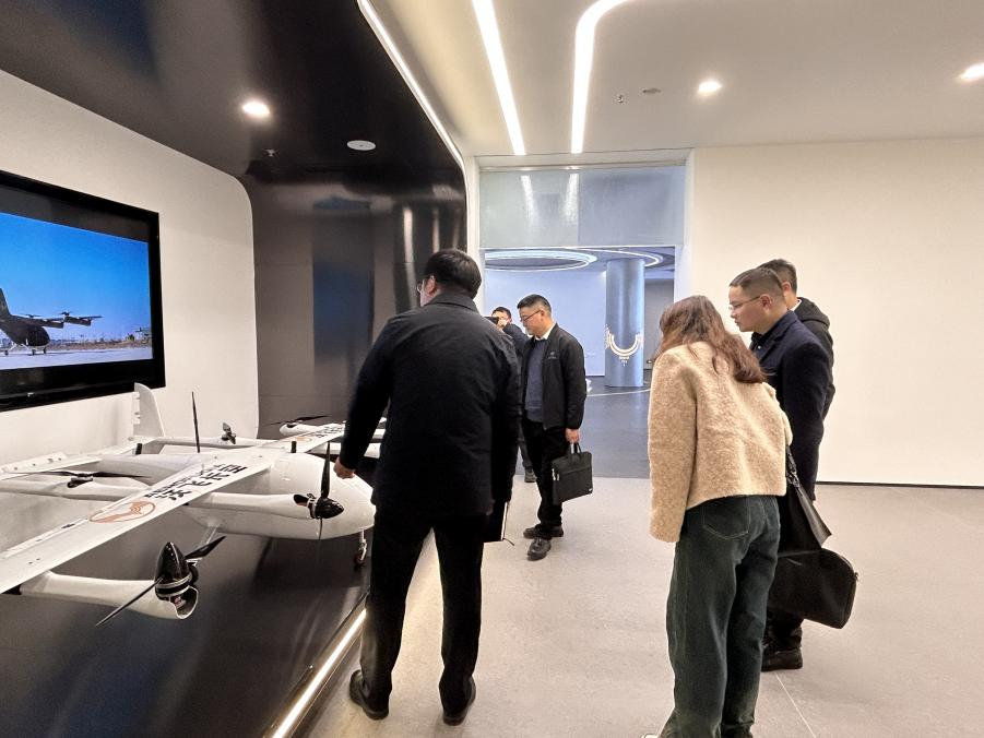 在沃飛長(zhǎng)空新落成的企業(yè)展廳,調(diào)研組深度體驗(yàn)了智能飛行器、無人機(jī)系統(tǒng)等前沿科技成果,系統(tǒng)了解低空飛行領(lǐng)域從技術(shù)研發(fā)到商業(yè)應(yīng)用的全鏈條創(chuàng)新實(shí)踐。沃飛長(zhǎng)空副總裁兼首席公共關(guān)系官肖前志重點(diǎn)介紹了企業(yè)在eVTOL(電動(dòng)垂直起降飛行器)、城市空中交通等領(lǐng)域的突破性進(jìn)展。