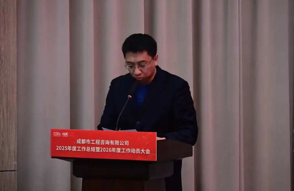 馬躍開新局,咨繪高質(zhì)量。1月28日,成都市工程咨詢有限公司召開2025年度工作總結(jié)暨2026年度工作動(dòng)員大會(huì)。集團(tuán)黨委副書記、副董事長(zhǎng)、總經(jīng)理陸輝,集團(tuán)黨委專職副書記、董事、工會(huì)主席劉洋海出席。公司黨總支書記、董事、總經(jīng)理陳崎虎主持會(huì)議。公司領(lǐng)導(dǎo)班子、公司及魚鳧咨詢公司全體員工參加會(huì)議。