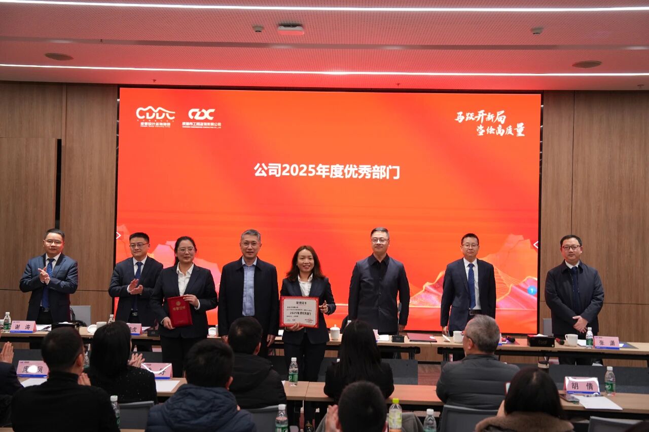 在年度表彰環(huán)節(jié),集團(tuán)和公司領(lǐng)導(dǎo)分別為獲得2025年度公司優(yōu)秀部門、優(yōu)秀智庫(kù)成果、優(yōu)秀項(xiàng)目部(組)和優(yōu)秀員工的集體和個(gè)人頒獎(jiǎng)。隨后,公司技術(shù)質(zhì)量部王天、投資咨詢事業(yè)部陽(yáng)運(yùn)秀作為優(yōu)秀員工代表上臺(tái)發(fā)言。兩位同志表示,將把成績(jī)作為新的起點(diǎn),緊扣集團(tuán)和公司戰(zhàn)略,深化學(xué)習(xí)、扎實(shí)履職,與全體同事一道為集團(tuán)和公司高質(zhì)量發(fā)展貢獻(xiàn)力量。