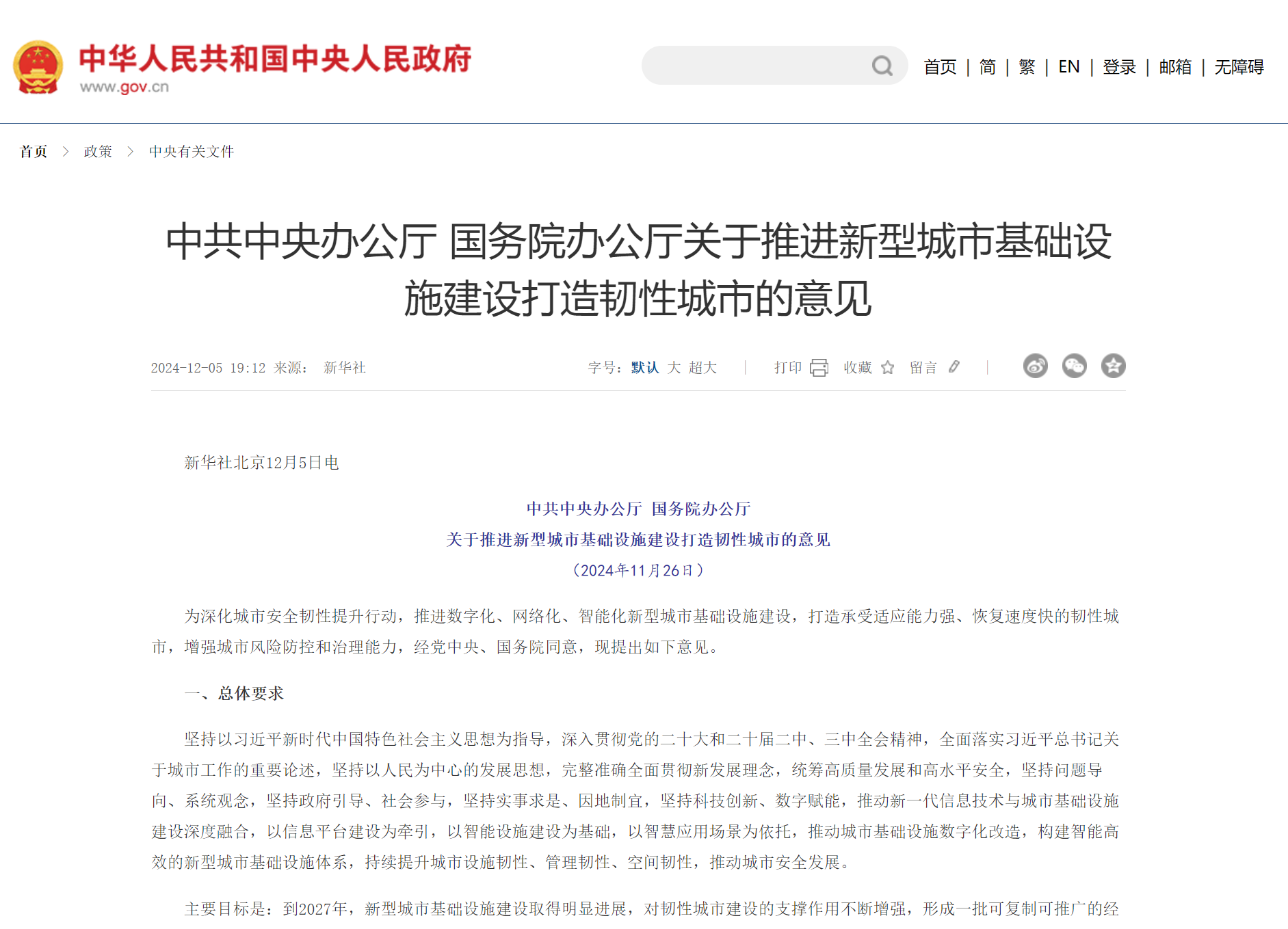 為深化城市安全韌性提升行動(dòng),推進(jìn)數(shù)字化、網(wǎng)絡(luò)化、智能化新型城市基礎(chǔ)設(shè)施建設(shè),打造承受適應(yīng)能力強(qiáng)、恢復(fù)速度快的韌性城市,增強(qiáng)城市風(fēng)險(xiǎn)防控和治理能力,經(jīng)黨中央、國務(wù)院同意,現(xiàn)提出如下意見。