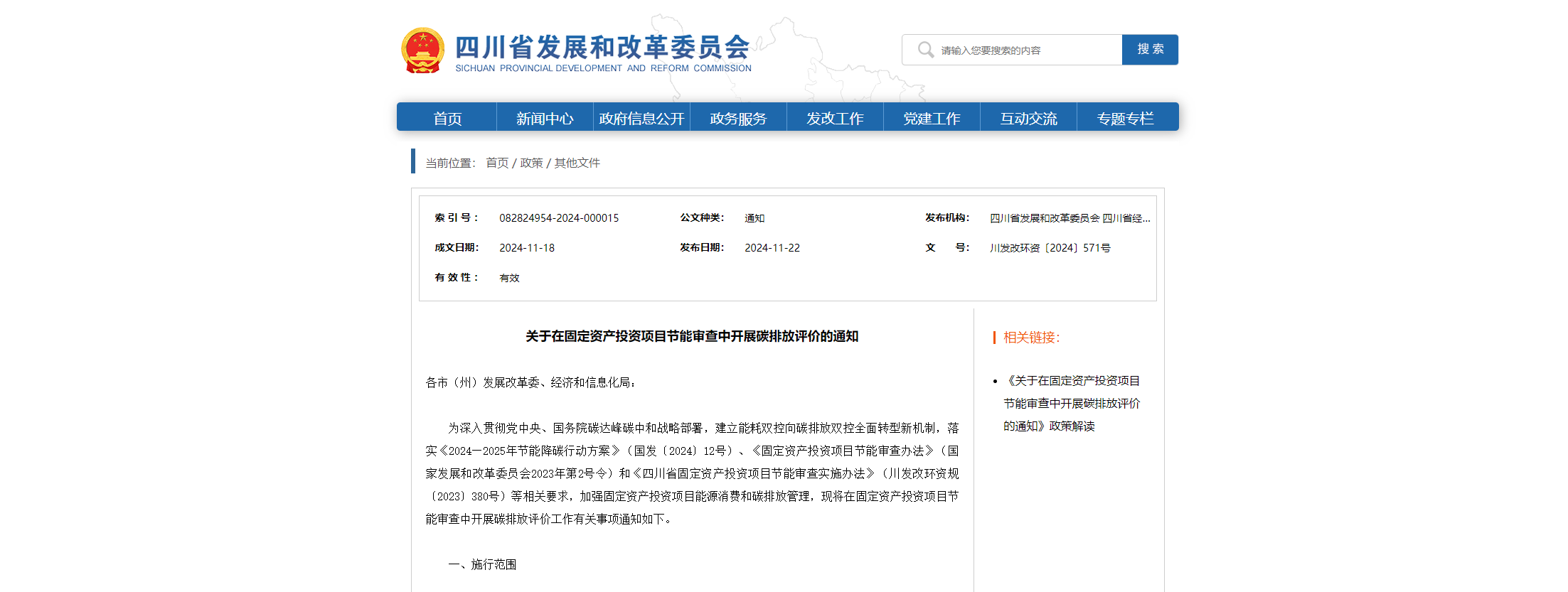 關(guān)于在固定資產(chǎn)投資項(xiàng)目節(jié)能審查中開展碳排放評(píng)價(jià)的通知 各市(州)發(fā)展改革委、經(jīng)濟(jì)和信息化局:為深入貫徹黨中央、國務(wù)院碳達(dá)峰碳中和戰(zhàn)略部署,建立能耗雙控向碳排放雙控全面轉(zhuǎn)型新機(jī)制,落實(shí)《2024—2025年節(jié)能降碳行動(dòng)方案》(國發(fā)〔2024〕12號(hào))、《固定資產(chǎn)投資項(xiàng)目節(jié)能審查辦法》(國家發(fā)展和改革委員會(huì)2023年第2號(hào)令)和《四川省固定資產(chǎn)投資項(xiàng)目節(jié)能審查實(shí)施辦法》(川發(fā)改環(huán)...
